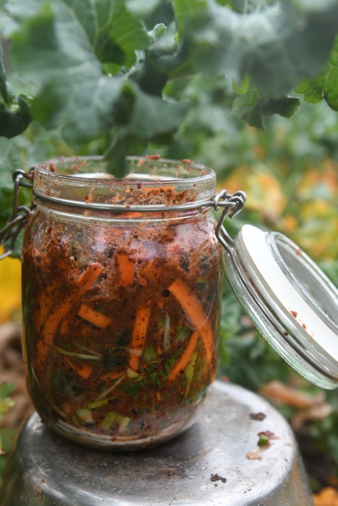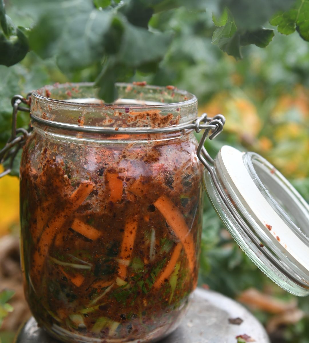 We all know how good fermented foods are for us. Bursting with beneficial bacteria and so so good for our gut microbiome. But did you know that by making this stunning farm fresh vegan kale kimchi you’re not only supporting your health, but also supporting biodiversity? Organic farms boast up to 50% more biodiversity compared to conventional farming setups. And by supporting small farmers who do their part in protecting our environment such as not using pesticides, growing hedgerows and leaving the kale to flower in the spring, your gut-healing kimchi is much more than the sum of it’s parts.