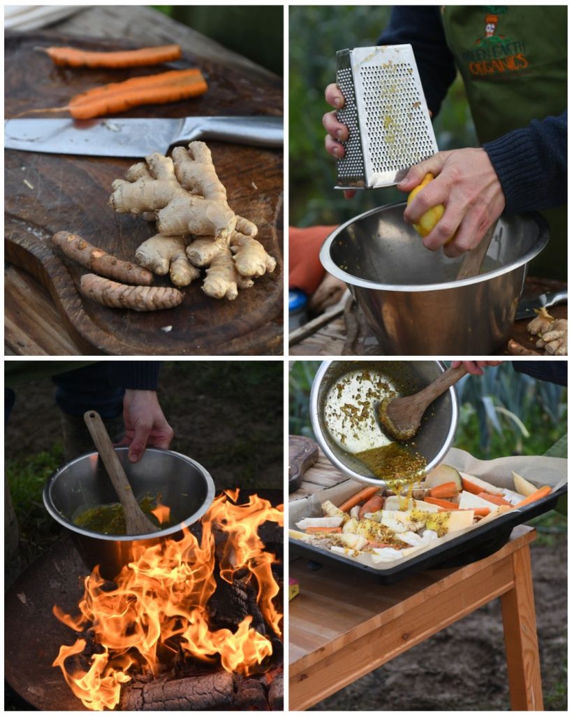 To roast the root vegetables: preheat the oven to 180c. Mix 50ml of ghee with the
